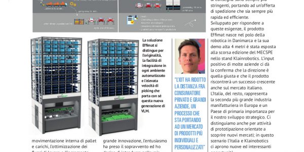 Le navette della danese MiR ( Mobile Industrial Robots) e i magazzini verticali EFFIMAT sono due delle ultime tecnologie entrate nella famiglia di prodotti distribuiti e rappresentati in Italia da KLAINrobotics .